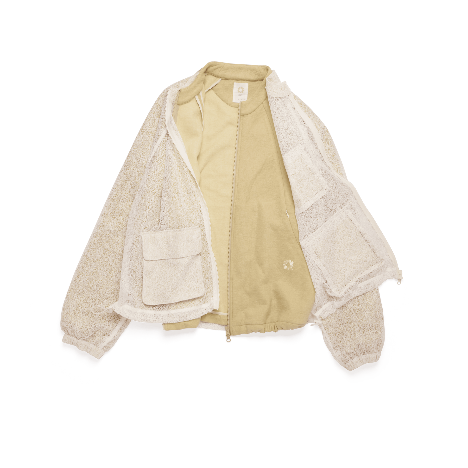 Double Layer (Jersey and Mesh) Detachable 2in1, Two Enclosed YKK Zips to Front of Garment (Gunmetal), YKK Two Way Zip to Front (Both Layers), Shallow Drop Collar, Elasticated Cuffs, Cord Adjuster to Hem (Both Layers), Gusset Pockets to Mesh Layer.